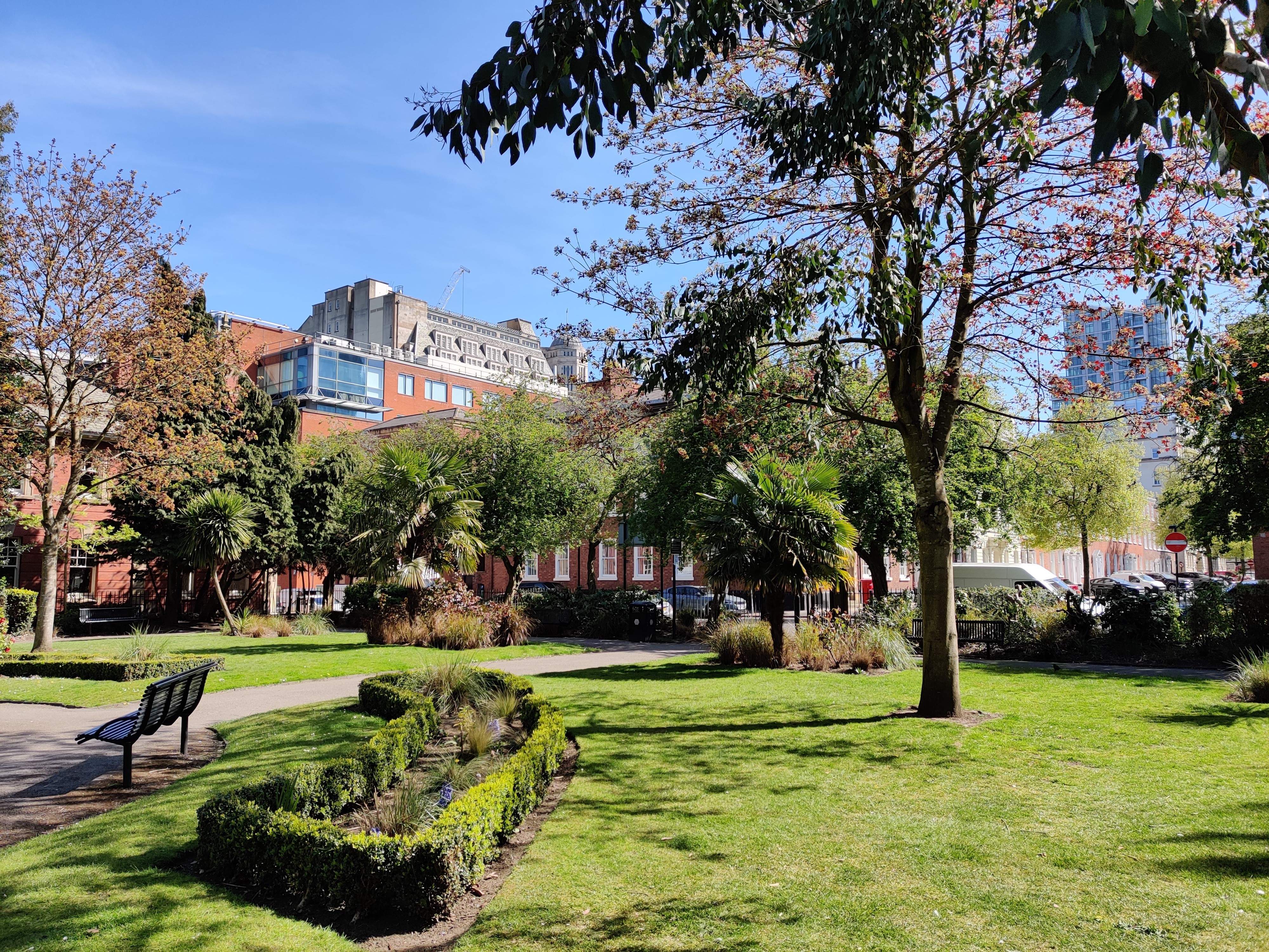 Walk experienced on 23 April 2021. Keep Going Then Vanish starts outside the Royal Exchange Theatre on Cross Street.