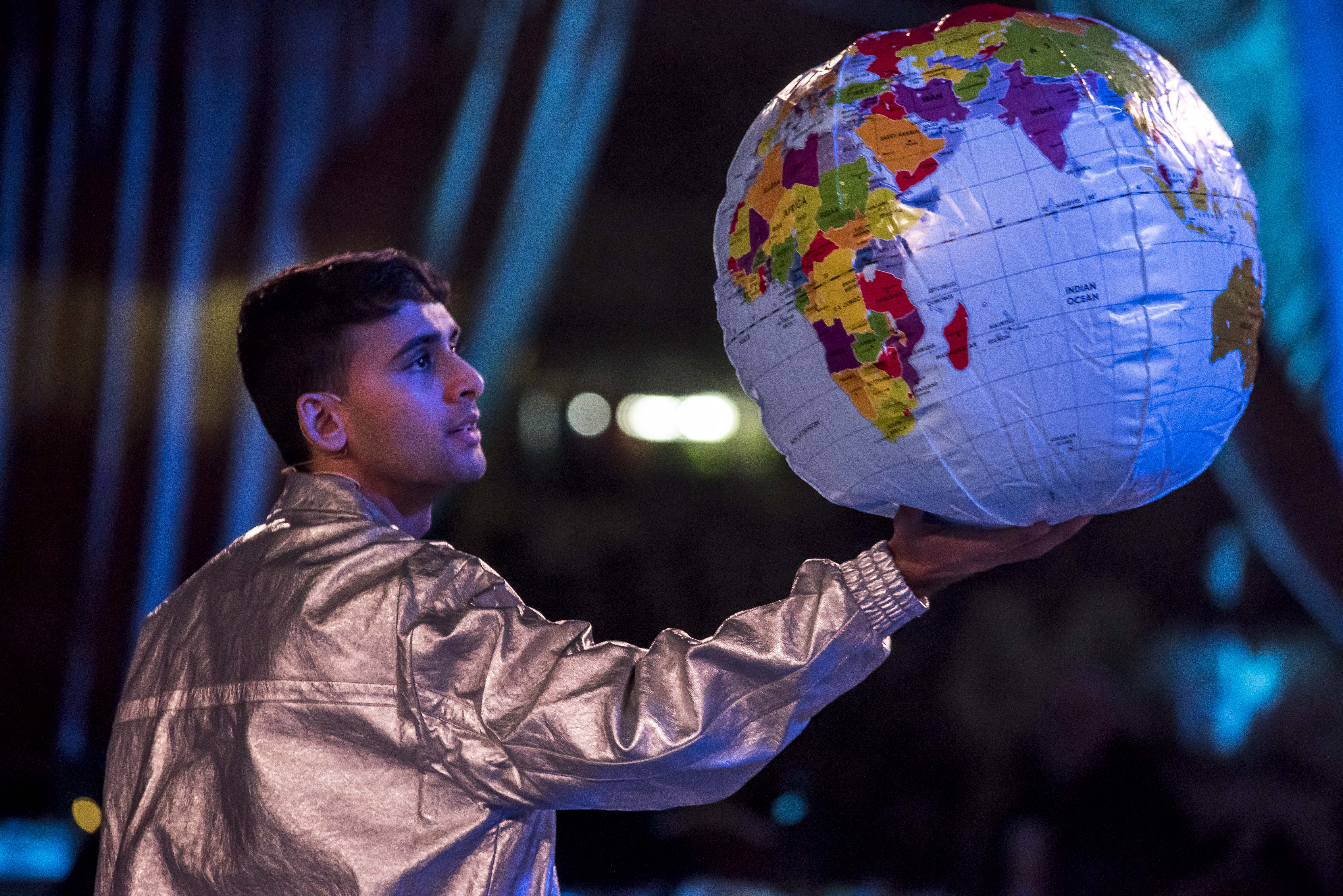 Brightly coloured drapes soften the edges of the Queen Elizabeth Hall’s immense concrete walls, and the audience are seated together at tables. There’s a wonderfully warm welcome front of house, and a lot of goodwill in the room as people settle in – and then the ‘party’ begins, and it’s not long before I start to wish my invitation had got lost in the post.